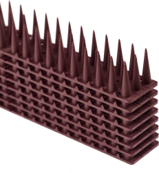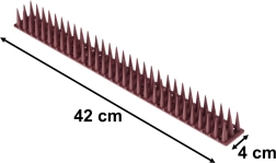 Kunststoffspikes gegen Vögel sind eine wirksame und schonende Lösung zum Schutz von Fensterbänken, Gesimsen, Geländern und Balkonen. Die dichte Anordnung der Spikes verhindert sicheres Landen und reduziert damit Verschmutzungen und das Risiko von Schäden. Die braune Farbe wirkt unauffällig und stört die Fassadenoptik nicht.