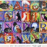 Das farbenfrohe Collagenmotiv verbindet Buchstaben und niedliche Katzen – ideal für entspanntes Puzzeln und als Geschenk für Katzenliebhaber.