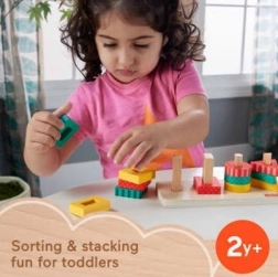 Der FISHER-PRICE Holz-Formensortierer ist ein sicheres und langlebiges Lernspielzeug, inspiriert von Montessori-Prinzipien. Kinder sortieren und stecken bunte Dreiecke, Kreise, Rechtecke und Quadrate auf die vorbereitete Basis und trainieren so spielerisch die Hand-Auge-Koordination, Konzentration sowie die Wahrnehmung von Farben und Formen.