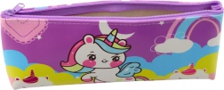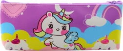 Das beeindruckende Einhorn- und Regenbogenmuster in Pastellfarben macht das Mäppchen für Kinder attraktiv.