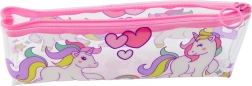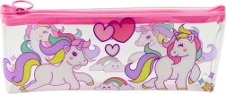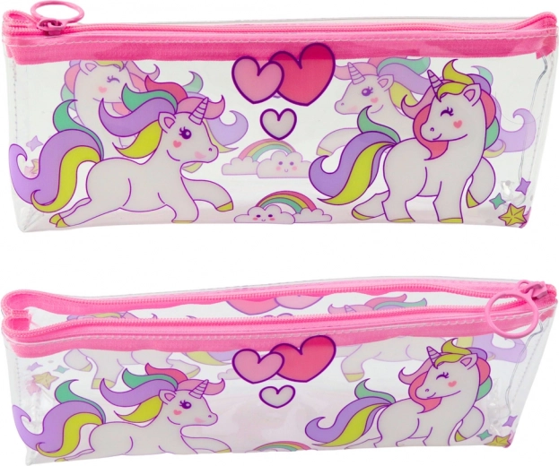 Das niedliche Etui mit Einhorn-Motiv ist der perfekte Begleiter für den täglichen Schulbedarf. Der transparente Körper mit einem leuchtend pinken Reißverschluss passt leicht in einen Rucksack oder Schließfach, ohne viel Platz einzunehmen. Dank des durchsichtigen Materials können Sie den Inhalt schnell identifizieren, was die Organisation der Schulutensilien erleichtert.