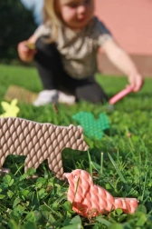 Das Material VYLEN ist ein tschechisches, zertifiziertes Produkt, regelmäßig getestet und gesundheitlich unbedenklich. Die Spielzeuge sind reißfest und pflegeleicht – bei Verschmutzung einfach abspülen.