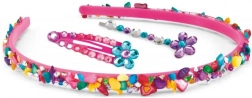Enthält Plastik- und Drahtstirnbänder, Metallclips, Perlen und Edelsteine für einen einzigartigen Look.
