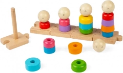Entdecken Sie kreatives Spiel für die Kleinsten: ein hölzernes Steckset mit bunt gefärbten Ringen und Figuren auf fünf Stäben, die auf einer Puzzle-Basis stehen. Kinder können Farben, Formen und Gesichter beliebig kombinieren, ihrer Fantasie freien Lauf lassen und spielerisch lernen. Das Spielzeug fördert Feinmotorik, Hand-Auge-Koordination, Farb- und Formenwahrnehmung sowie Problemlösefähigkeit. Hergestellt aus FSC-zertifiziertem Holz und mit ungiftigen Farben gefärbt, inspiriert von Montessori-Prinzipien.