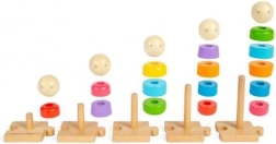 Das Aufstecken von Ringen und Köpfen auf die Stäbe trainiert Griff, Präzision und Hand-Auge-Koordination – ideal für Kinder ab 1 Jahr.