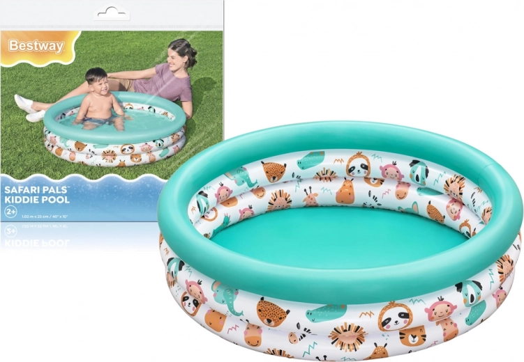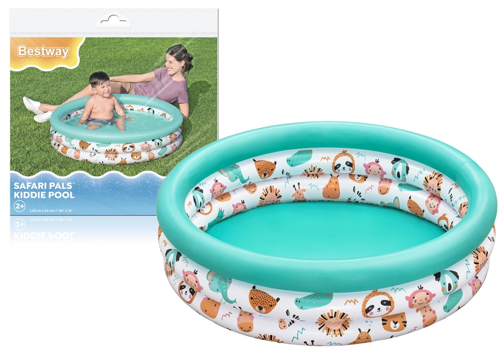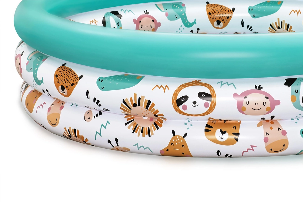 Das aufblasbare Becken mit fröhlichen Tierprints ist eine großartige Wahl für kleine Wasserratten. Dank der kompakten Maße von 102 × 24 cm passt es in jeden Garten oder auf jede Terrasse, und durch die geringe Höhe wärmt sich das Wasser schnell in der Sonne auf. Weiche Wände und ein angenehmer Boden sorgen für bequemes und sicheres Spielen.