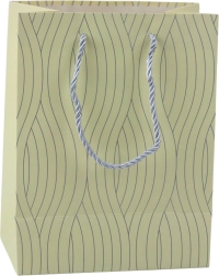 Weiße geflochtene Griffe sorgen für bequemes Tragen und hohe Haltbarkeit der Tasche, was sie auch für schwerere Geschenke geeignet macht.