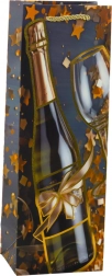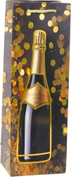 Suchen Sie eine elegante Möglichkeit, eine Flasche Wein, Sekt oder selbstgemachten Likör zu verpacken? Diese Geschenktasche aus hochwertigem Papier überzeugt durch glänzende goldene Akzente und ein Champagner-Motiv, die dem Geschenk eine besondere Note verleihen. Geflochtene Materialgriffe in Gold liegen angenehm in der Hand und sorgen für sicheres Tragen.