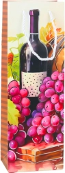 Bunte Motive mit Weinflaschen und Trauben verleihen der Tüte ein elegantes Aussehen.