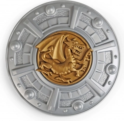Detailierter Schild und Rüstung mit goldenem Drachenemblem verleihen dem Kostüm eine eindrucksvolle Optik und betonen den ritterlichen Charakter.