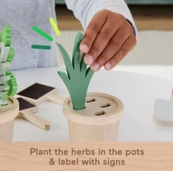 Kinder können in den Blumentöpfen Kräuter anbauen, sie mit den beiliegenden Tafeln beschriften (Kreide ist nicht im Lieferumfang enthalten) und den Sprüher verwenden, um ihren kleinen Garten zu pflegen.