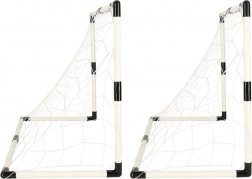 Zwei Tore, zwei Bälle und eine Handpumpe – alles bereit für sofortigen Spielspaß ohne weitere Einkäufe.