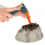 Mit Hammer, Meißeln und Pinsel legen Kinder das verborgene Dinosaurierskelett und Minerale frei – das trainiert Geduld und Feinmotorik.