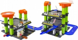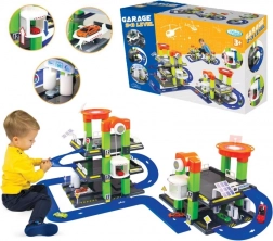 Dreistöckige Mega Garage Mochtoys ist ein tolles Spielzeug für Kinder, das eine moderne Struktur mit zwei verbundenen Garagen und einer umfangreichen Ausstattung für fantasievolles Spielen bietet.