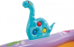 Interaktive Elemente wie der Dinosaurier mit Wurfring/Korb und die Wand mit Öffnungen zum Durchwerfen der Bälle fördern Geschicklichkeit, Präzision und Hand-Auge-Koordination. Widerstandsfähiges PVC und weiche aufblasbare Komponenten erhöhen die Sicherheit beim Spielen, das beiliegende Reparaturflicken erleichtert die schnelle Behebung kleiner Beschädigungen.