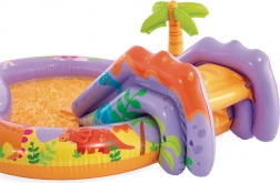 Verwandeln Sie den Garten in ein kleines Wasserparadies. Das aufblasbare Wasserzentrum von INTEX kombiniert ein flaches Planschbecken, eine Rutsche mit gepolsterter Landung und eine Fontäne – einfach den Gartenschlauch anschließen und für Erfrischung ist gesorgt. Das bunte Dinosaurier-Motiv begeistert Kinder und animiert zu aktiver Bewegung.