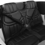 Sitz aus Eco-Leder mit 5-Punkt-Gurt, realistisches Lenkrad und Fahrtrichtungswähler. Weiche EVA-Räder für leises und komfortables Fahren.