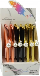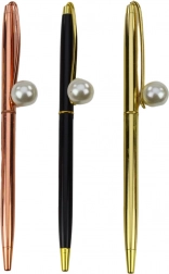 Metall-Kugelschreiber mit Perlenabschluss und Drehmechanismus, blaue Tinte 1,0 mm