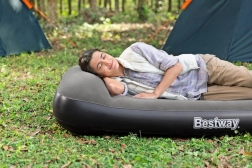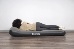 Genießen Sie erholsamen Schlaf, wo immer Sie sind. Das aufblasbare Bett BESTWAY Tritech kombiniert die stabile I‑Beam-Innenkonstruktion mit dem robusten Tritech-Material, das auch bei langfristiger Nutzung formstabil bleibt. Die angenehme Veloursoberfläche verhindert das Rutschen der Bettwäsche und sorgt die ganze Nacht für Komfort.