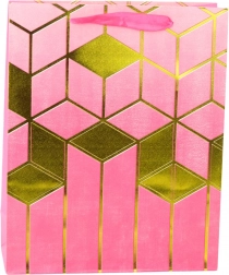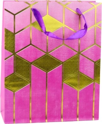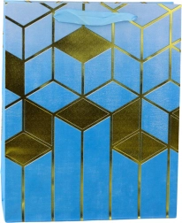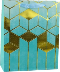 Diese elegante Geschenktasche vereint modernes Design mit Praktikabilität. Auffällige goldene geometrische Motive und satte Farben machen sie zur repräsentativen Verpackung für jedes Geschenk. Der feste Zierkarton und die robusten Kordelhenkel gewährleisten ein bequemes und sicheres Tragen.