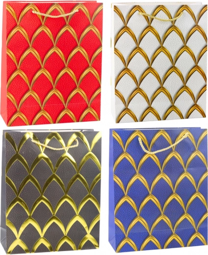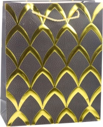Diese stilvolle Geschenktasche verleiht jedem Geschenk eine besondere Note. Im Handumdrehen verpacken Sie Ihr Präsent und bringen es dank stabiler Konstruktion und strapazierfähigem Material sicher zum Beschenkten. Die goldene Verzierung im Glamour-Stil zieht alle Blicke auf sich und hebt die Präsentation des Geschenks auf ein höheres Niveau.