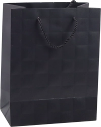 Diese stilvolle Geschenktasche überzeugt mit klarer Optik und einer feinen Textur geprägter Quadrate, die modern und zugleich edel wirkt. Dank des robusten Zierkartons und der hochwertigen Kordelgriffe ist die Tasche langlebig und auch für schwerere Geschenke geeignet.