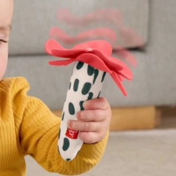 Im Set finden Sie eine Blümchen–Rassel und eine Biene mit Glöckchen. Jedes Spielzeug bietet unterschiedliche Geräusche und Texturen für ein vielfältiges sensorisches Spiel.