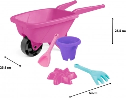 Suchen Sie das ideale Spielzeug für Spaß im Freien? Die rosa Kinderschubkarre mit Sandspielset bietet kreative Spiele im Sand und hilft bei der „Arbeit” im Garten. Dank der leichten und stabilen Ausführung ist sie besonders für jüngere Kinder geeignet – sie lässt sich leicht führen und hält gut die Spur.