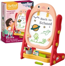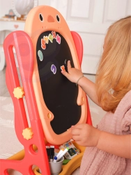 Die beidseitige WOOPIE-Tafel fördert Kreativität, Feinmotorik und das Lernen von Buchstaben und Zahlen auf spielerische Weise. Eine Seite dient als weiße Magnettafel für Trockenabwisch-Marker, die andere als Kreidefläche. Dank Höhenverstellung passen Sie sie einfach dem Wachstum des Kindes an.