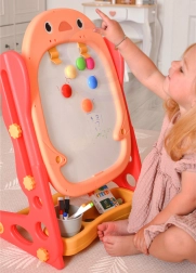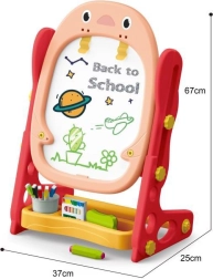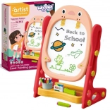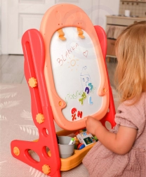 Alles ist enthalten, was Kinder brauchen: magnetisches Alphabet und Ziffern, Marker, Kreiden, Schwamm, eine praktische Ablage und ein Becher für Zubehör sowie zwei Brettspiele für gemeinsamen Spaß. Kompakte Maße erleichtern die Platzierung im Kinderzimmer.