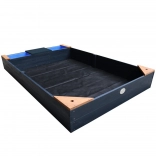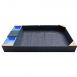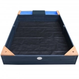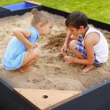 Hemlock-Holz ist splitterfrei und widerstandsfähig gegen Fäulnis. Abdeckung und Vlies schützen den Sand vor Verschmutzungen und Unkraut.