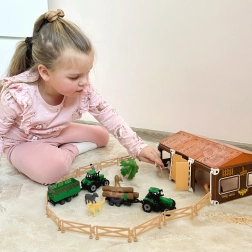 Kinder entwickeln Feinmotorik, Wortschatz und Vorstellungskraft. Das Spielen mit Figuren und Fahrzeugen motiviert zum Erzählen von Geschichten und zum Lernen über das Leben auf dem Bauernhof.