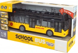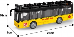 Dieser Bus für Kinder ab 3 Jahren ist im Maßstab 1:16 gefertigt und mit einem Friktionsantrieb ausgestattet, der ein einfaches Vorwärtsfahren ermöglicht. Das Spielzeug bietet realistische Licht- und Soundeffekte, die per Knopfdruck aktiviert werden. Im Inneren des Fahrzeugs blinkt ein blaues Licht, was den Spielspaß erhöht.
