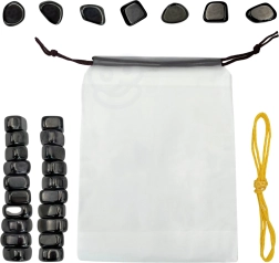 20 magnetische Steinchen in verschiedenen Formen, gelbe Schnur, Stoffbeutel, Anleitung