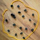 Die flexible Schnur schafft im Handumdrehen ein „Spielfeld“ überall. So bleibt das Spiel am Tisch und unterwegs übersichtlich.