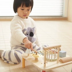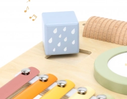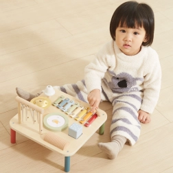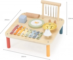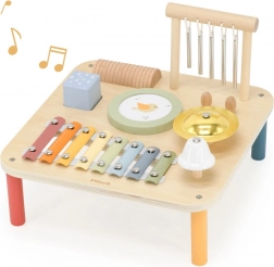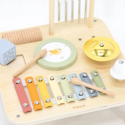Der Tisch enthält verschiedene Instrumente, die helfen, das Musikgehör und das Rhythmusgefühl Ihres Kindes zu entwickeln.