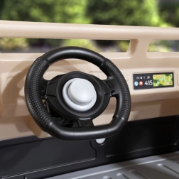 Das realistische Design des Geländewagens mit großen Rädern und offenem Dach unterstützt die kindliche Fantasie und spielerische Kreativität.