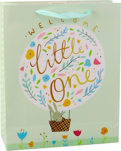 Die Geschenktasche Welcome Little One besteht aus hochwertigem dekorativem Karton, der Langlebigkeit und ein ästhetisches Erscheinungsbild gewährleistet. Satinierte Griffe in Mintfarben sorgen für Eleganz und Komfort beim Tragen. Die Tasche mit den Maßen 32 x 26 x 12 cm ist ideal zum Verpacken kleinerer und mittelgroßer Geschenke wie Kleidung, Spielzeug oder Baby Kosmetik geeignet.