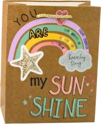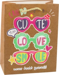 Die Tasche zeichnet sich durch vier verschiedene Motive aus, die jeweils mit lebendigen Farben und positiven Sprüchen begeistern, die den jugendlichen und optimistischen Charakter unterstreichen. Starke Seilgriffe sorgen für bequemen Transport und passen farblich zum Design. Die Tasche mit den Maßen 23 x 18 x 10,5 cm ist ideal zum Verpacken von mittelgroßen und kleineren Geschenken wie Kosmetika, Accessoires, Büchern oder Süßigkeiten.