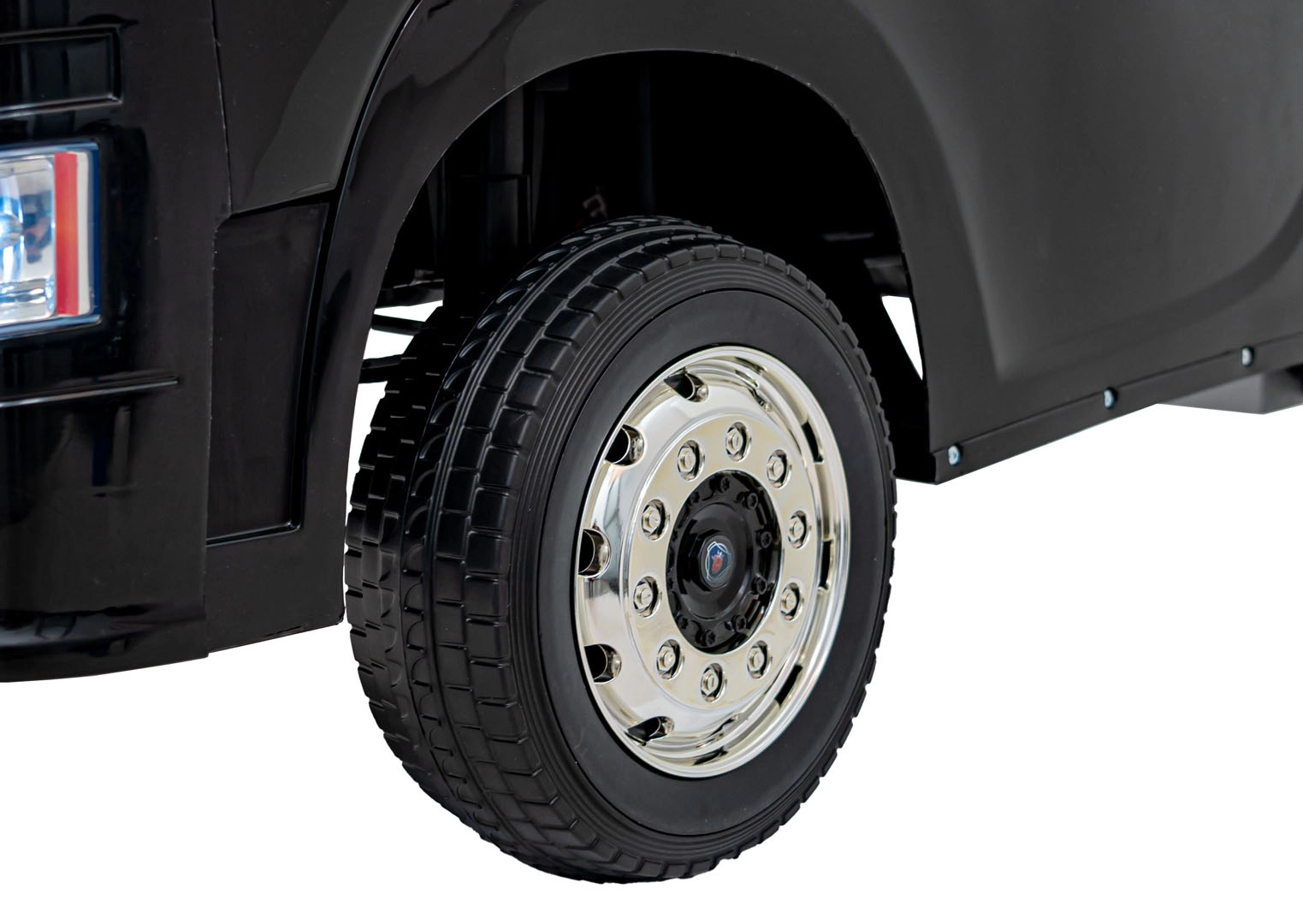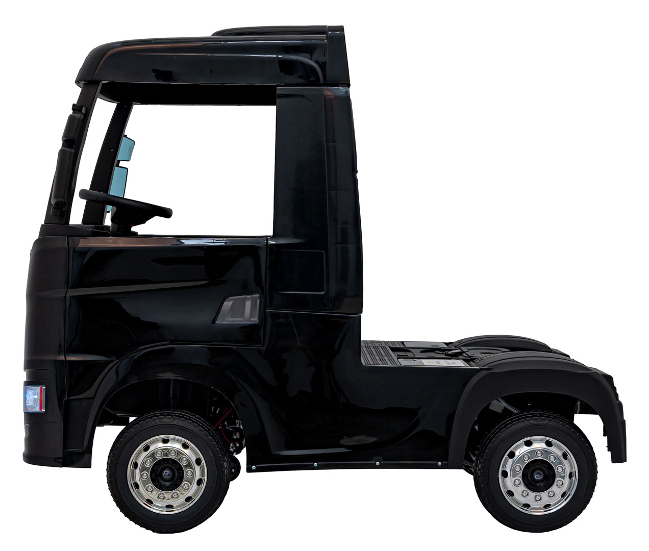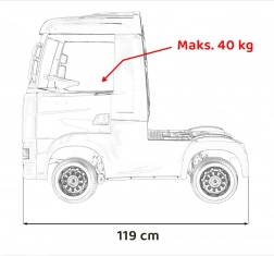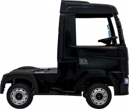 Der stylische Kinder-Lkw SCANIA R‑SERIES in Schwarz bietet Kindern ein realistisches Fahrerlebnis. Er verfügt über 4 Motoren mit 35 W, eine Stromversorgung 2× 12 V 7 Ah, EVA-Schaumräder für leises Fahren, LED-Lichter und ein umfangreiches Audio-Panel mit MP3/USB/Bluetooth. Eltern schätzen die 2,4‑GHz‑Fernsteuerung mit Stopp-Schalter, Kinder den Komfort des Sitzes aus Eco‑Leder mit Sicherheitsgurt und öffnenden Türen.