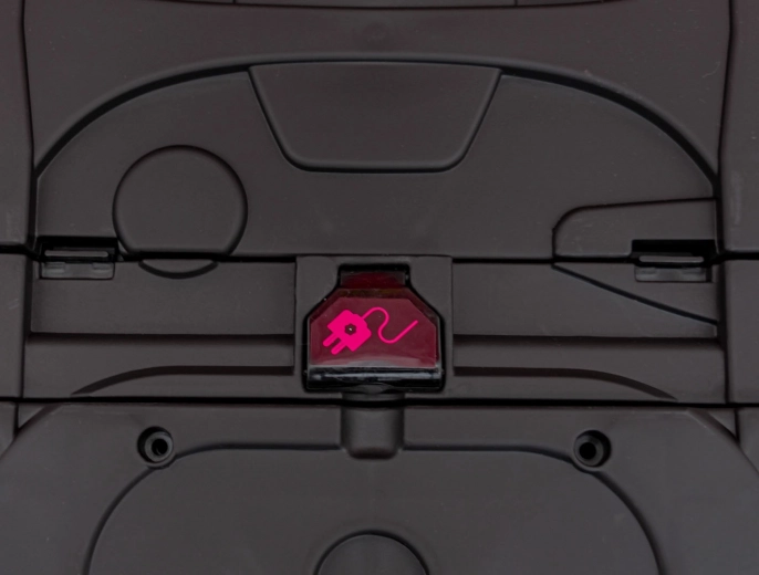 Der Innenraum überzeugt mit einem weichen Sitz aus Eco‑Leder mit Sicherheitsgurt, einem funktionsreichen Audio‑Panel (MP3, USB, Bluetooth), Hup- und Soundtasten am Lenkrad sowie einem Ladezustandsindikator. Für die Sicherheit und den Komfort der Eltern gibt es eine 2,4‑GHz‑Fernbedienung mit 3 Geschwindigkeiten und einer Not‑Stop‑Taste. Öffnende Türen erleichtern das Einsteigen, die robuste Konstruktion trägt bis zu 40 kg, und die Bodenfreiheit von 13 cm meistert Bordsteine wie auch den Garten.
