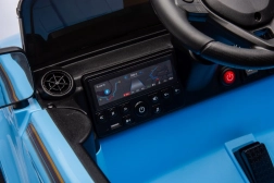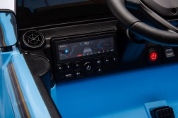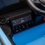 Front-LED-Lichter und ein Multimedia-Panel mit MP3, Bluetooth und USB. Lenkrad mit Hupe und Sounds für noch mehr Realismus.