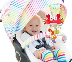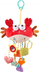 Die Krabbe enthält 9 Funktionen in einem Produkt, wie Rassel, Beißring, Quietscher, raschelnde Beine, Spiegel mit Spiegeleffekt und mehr. Das Spielzeug kann leicht mit dem universellen Clip am Kinderwagen, Bettchen, Autositz oder Liegestuhl angebracht werden.