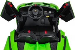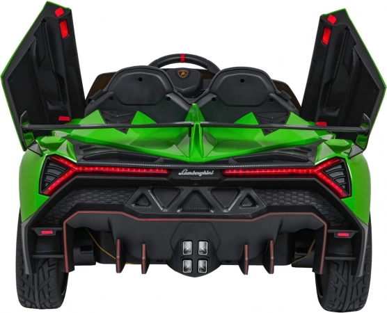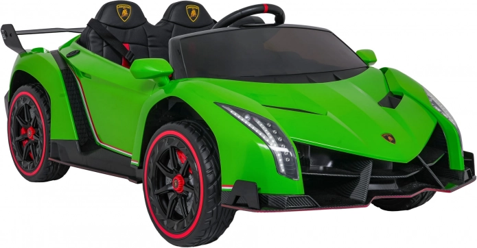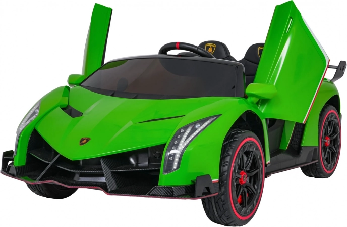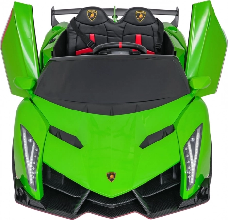 Für Unterhaltung ist gesorgt: Bluetooth, MP3, USB, FM-Radio, Sounds und Hupe am Lenkrad. Der Innenraum mit zweisitzigem Eco-Ledersitz bietet Platz für Geschwister oder Freunde, Sicherheitsgurte sorgen für Schutz. LED-Lichter, aufklappbare Scissor-Türen und realistische Karosseriedetails schaffen ein authentisches Erlebnis.