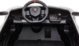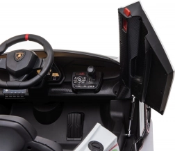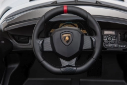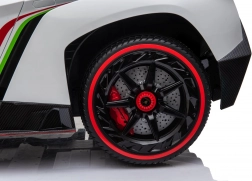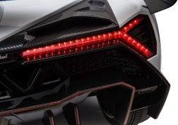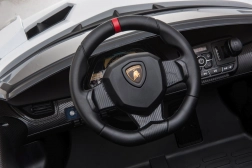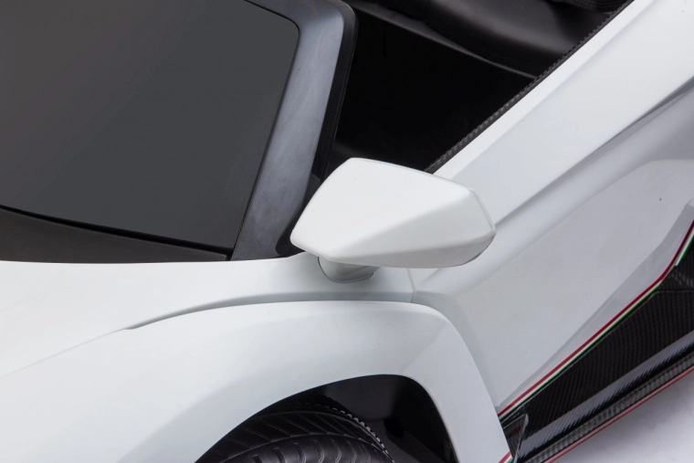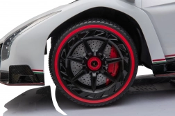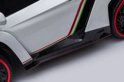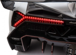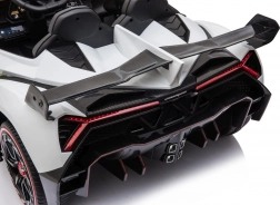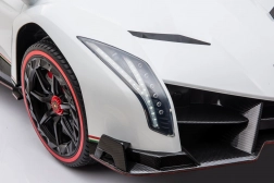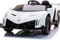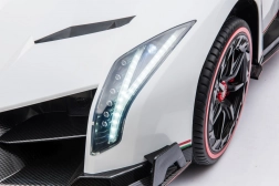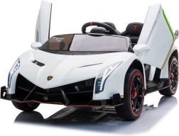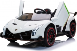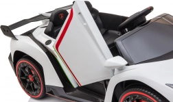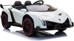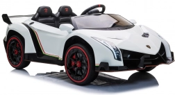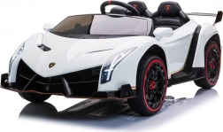 Stylisches elektrisches Kinderauto LAMBORGHINI Veneno in Weiß mit 4×45 W Motoren, doppeltem Akku 12 V 7 Ah ×2, EVA-Schaumrädern und öffnenden Türen. Dank sanftem Anfahren, 2 Vor-/Rückwärtsgeschwindigkeiten und 2,4-GHz-Fernsteuerung mit Sicherheits-Stop-Taste ist die Fahrt sicher und komfortabel. Luxus pur durch Sitz aus Kunstleder mit Gurten, LED-Beleuchtung vorne und hinten sowie ein umfangreiches Audio-Panel mit MP3, Bluetooth, FM und USB.