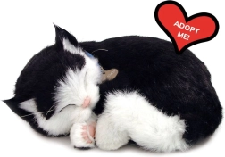 Dieses realistische Plüschkätzchen in Schwarz-Weiß schläft friedlich in seinem Körbchen und „atmet“ sanft, wodurch eine gemütliche Atmosphäre und das Gefühl der Anwesenheit eines echten Haustiers entstehen. Dank der detailreichen Verarbeitung, dem Halsband mit Anhänger und dem weichen Fell ist es ein tolles Geschenk für Kinder ab 3 Jahren und Katzenliebhaber.