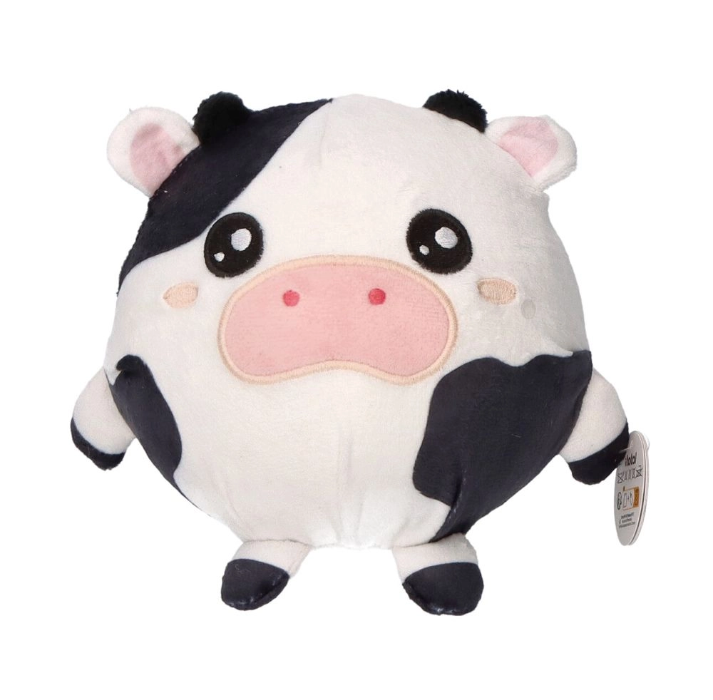 Suchen Sie ein niedliches und zugleich praktisches Geschenk? Dieser plüschige Quetschball in Kuhform verbindet weichen Plüsch mit einem drückbaren Kern zur Stresslinderung. Die runde Form liegt angenehm in der Hand, die auffälligen schwarz-weißen Flecken und der rosafarbene Rüssel sorgen dafür, dass man sich sofort in die Kuh verliebt.