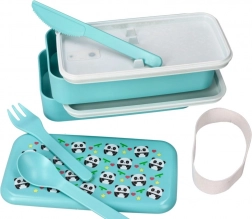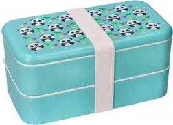 Der stylische zweistöckige Bento-Box in Türkis mit verspieltem Panda-Motiv hält Ihr Essen frisch und getrennt. Dank der kompakten Maße 20 × 10,6 × 10 cm passt sie in Schulranzen wie Arbeitstasche, und das Elastikband hält alles zuverlässig zusammen.