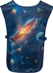 Planeten- und Sternenmotive sorgen für Spaß beim Kreativsein – die Schürze wird zum Lieblingshelfer für Schule und Freizeit.
