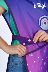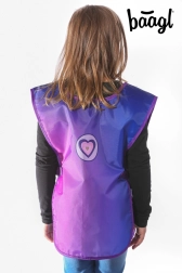 Diese farbenfrohe Kinderschürze mit blau-violettem Farbverlauf und einem niedlichen Herzchen ist ideal für den Kunstunterricht, AGs und kreative Arbeiten zu Hause. Dank des robusten, abwaschbaren Materials ist sie pflegeleicht und langlebig.